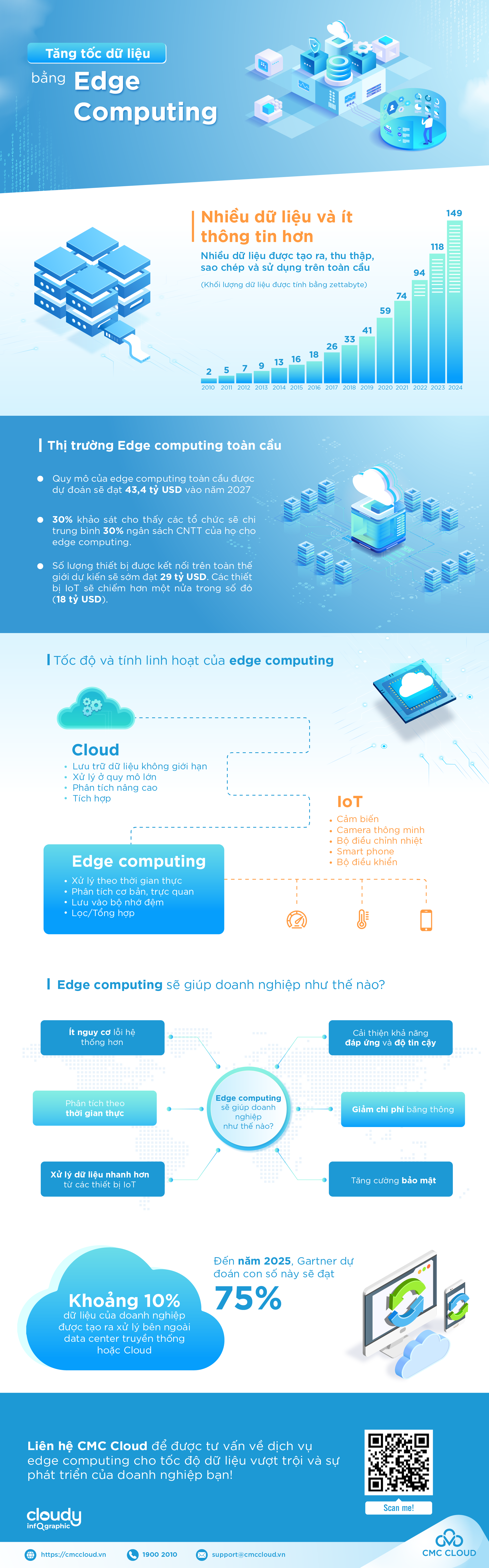 Mô hình điện toán biên Edge computing ngày càng được ưa chuộng trong những năm gần đây khi quy mô của toàn cầu của mô hình này được dự đoán sẽ đạt 43,4 tỷ USD vào năm 2027, chính là chìa khóa giúp tăng tốc độ xử lý dữ liệu của doanh nghiệp và giúp các tổ chức có thể tối ưu hóa quy trình xử lý dữ liệu của mình, cải thiện thời gian phản hồi và đạt được kết quả kinh doanh tốt hơn, đồng thời vẫn kiểm soát được chi phí.
